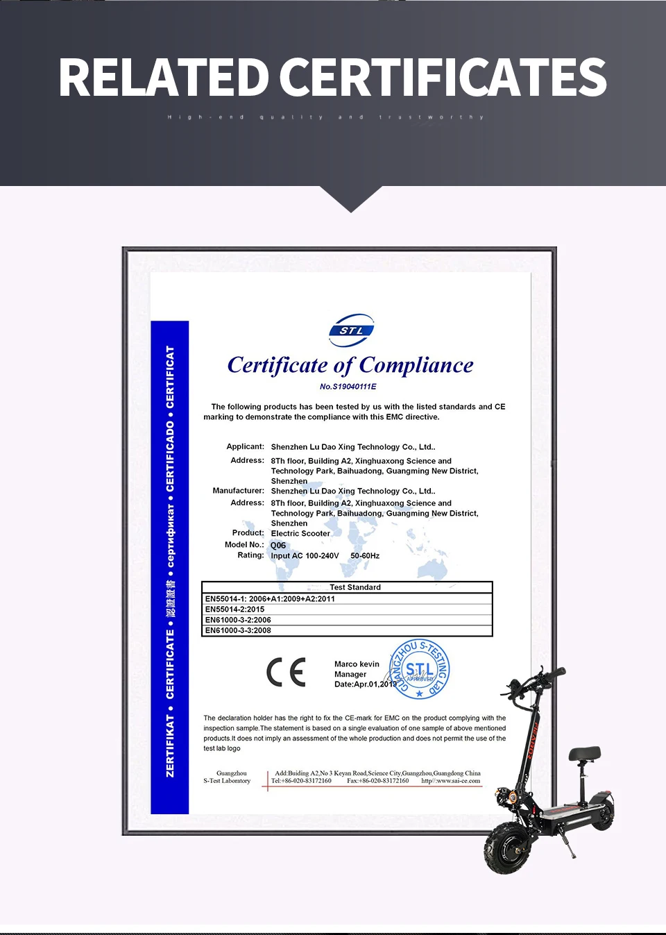 | Certification | ce |