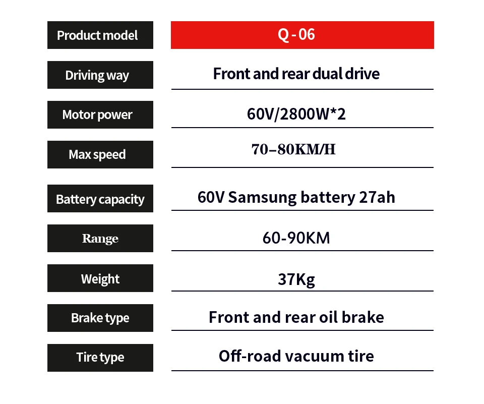 | Motor parameters | 60V 2800W * 2 |