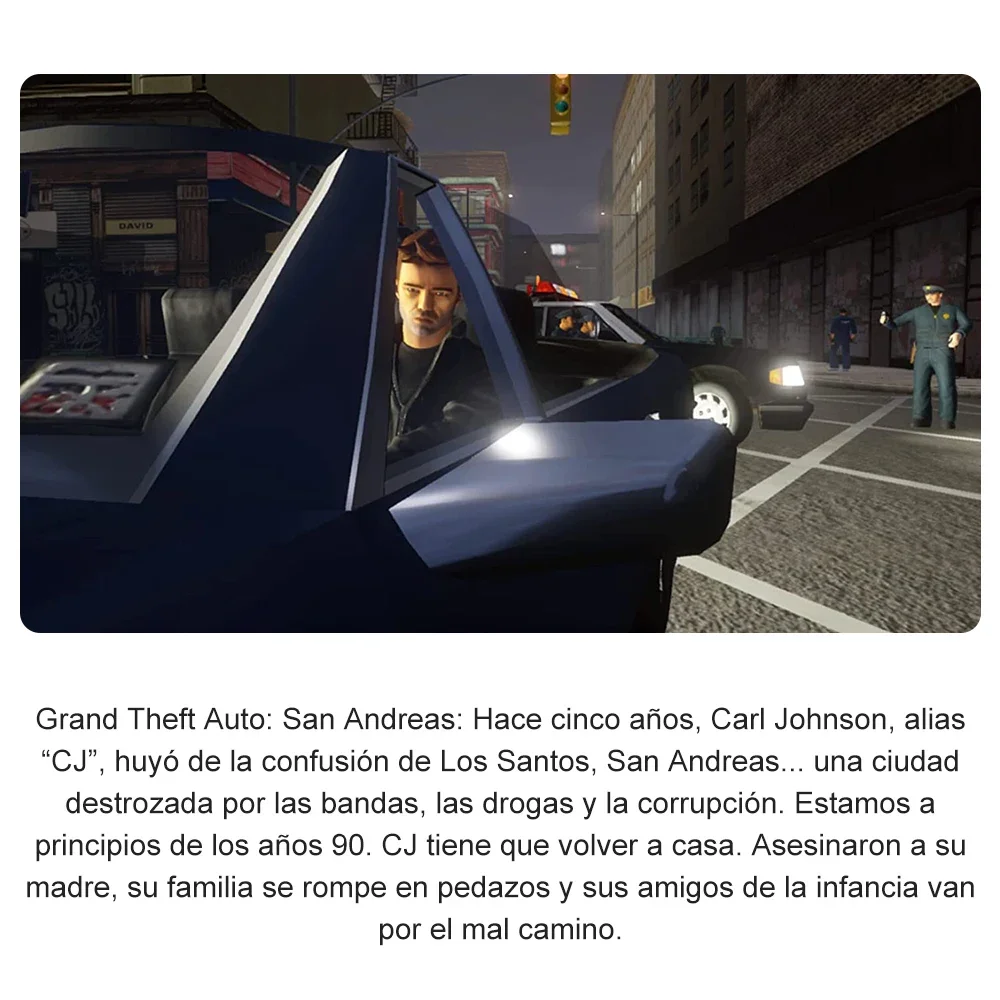 Three iconic cities, three epic stories. Play the genre-defining classics of the original Grand Theft Auto Trilogy: Grand Theft Auto III, Grand Theft Auto: Vice City and Grand Theft Auto: San Andreas updated for a new generation, now with across-the-board enhancements including brilliant new lighting and environmental upgrades, high-resolution textures, increased draw distances, Grand Theft Auto V-style controls and targeting, and much more, bringing these beloved worlds to life with all new levels of detail.