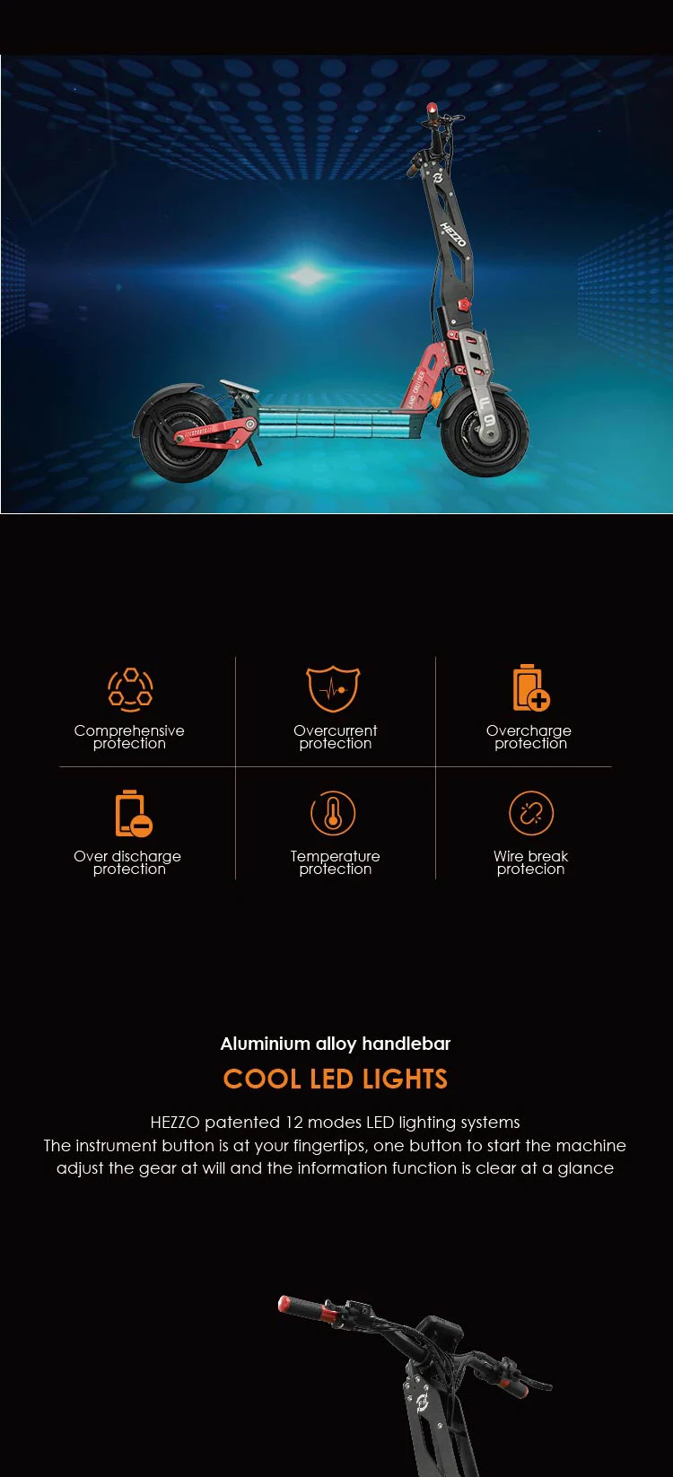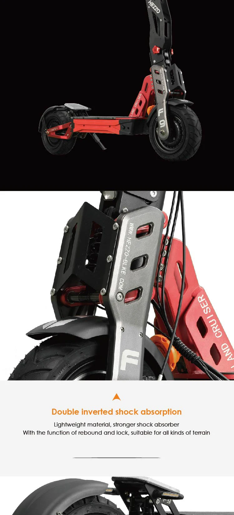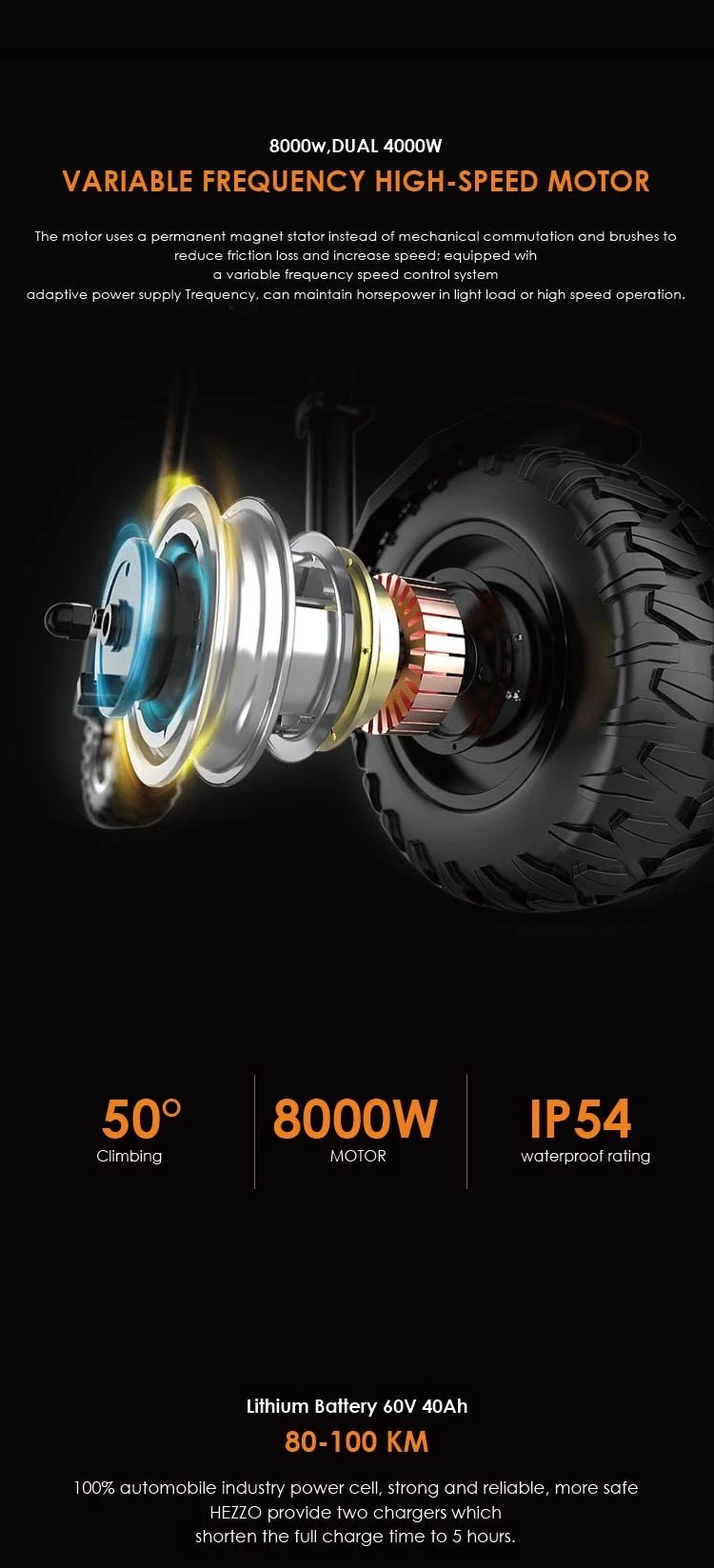 HEZZO 60v 8000w Electric off-road Scooter F9 40ah Lithium Battery dual motor
