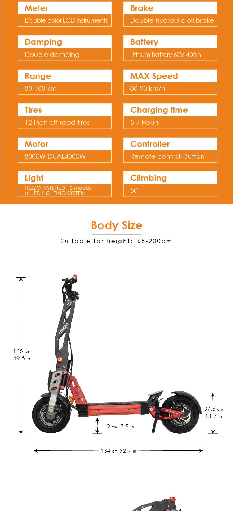 Be the first to review “HEZZO 60v 8000w Electric off-road Scooter F9 40ah Lithium Battery dual motor”