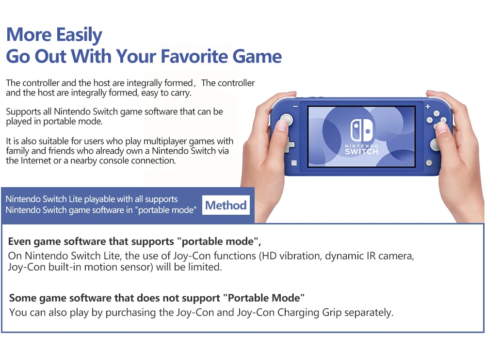 On Nintendo Switch Lite, the use of Joy-Con functions (HD vibration, dynamic IR camera,