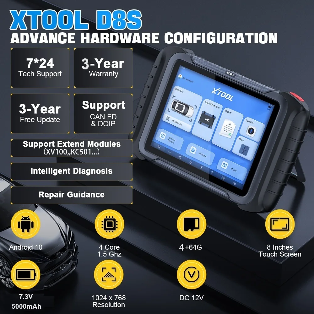 XTOOL D8S diagnostic scanner comes with 3 YEARS FREE software updates, Updates often include support for new vehicle makes, models and Functions, expanding the toolâs compatibility with newer vehicles. Regular updates help address any software bugs or issues, improving the overall performance and reliability of the diagnostic tool. Even after the free update has expired, the device will still work normally. If you encounter any problems, our technicians will serve you for free for life.